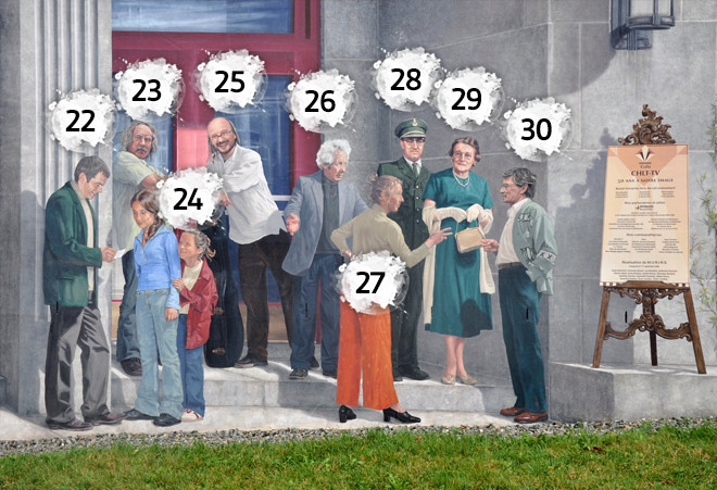 L’entrée de la salle fictive de la bâtisse où se seraient réunies les célébrités, est inspirée de l’architecture d’influence art déco de l’édifice du Séminaire de Sherbrooke et l’auditorium Saint-Charles, créé en 1950 par les architectes Poulin.